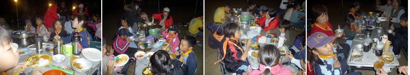 営火が終わり、各組で反省会をしてから、それぞれのテントで就寝。
