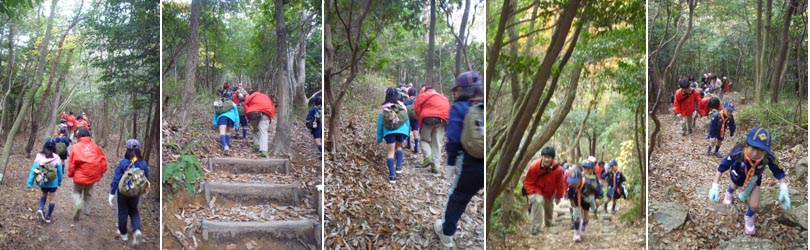 最初に目指す「道樹山」頂上までは急な登りが続きます。