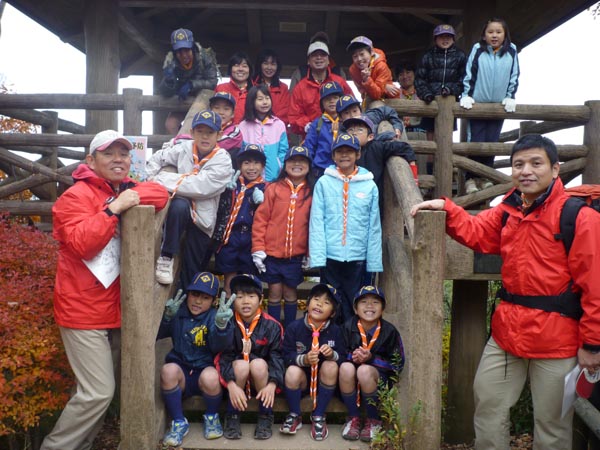 頂上は紅葉した木々に囲まれ、木立の間から望む景色もよく、休憩していてとても気持ちの良いところでした。