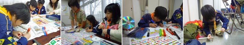 早速コマ作りを開始。 CDには、好きな国旗を書いて行きました。