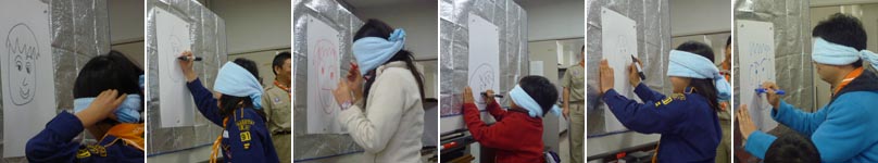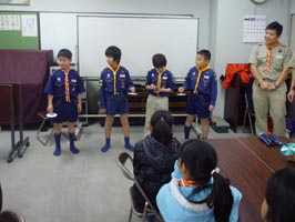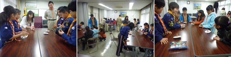 福笑いで上手にバランスよく描けたスカウトの二人に贈られました。