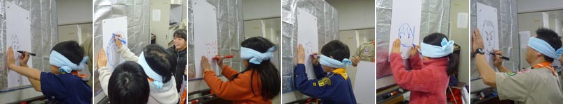普通の福笑いではなく、目隠しをしての自画像描きで福笑いをしました。