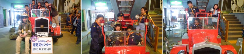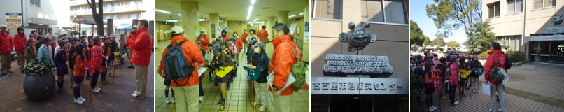 はじめに、体験コースの「地震体験」「伊勢湾台風を知る」「煙避難体験」を見学。