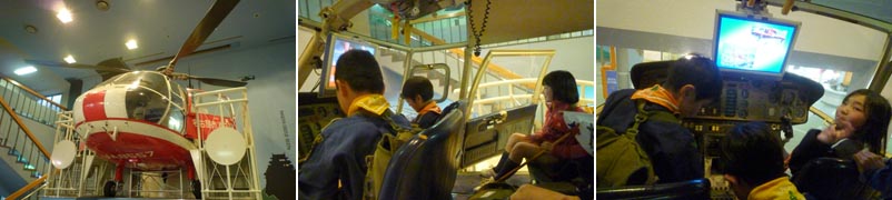 消防ヘリ、防災教室、通報体験などの展示物を組毎に見学してゆきました。