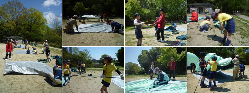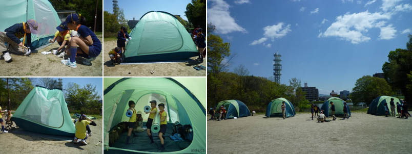 木々の新緑が気持ち良いこの季節。 明徳公園に集まり1泊2日のキャンプを行いました。