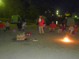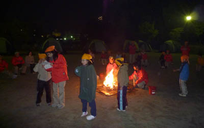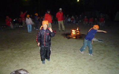 各隊スタンツのゲームやアクションソングで営火を楽しく過ごしました。
