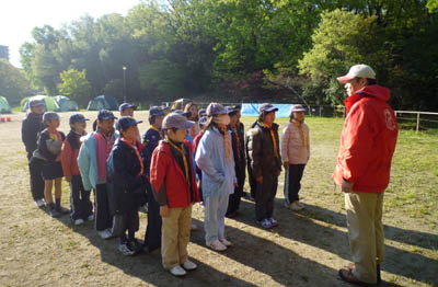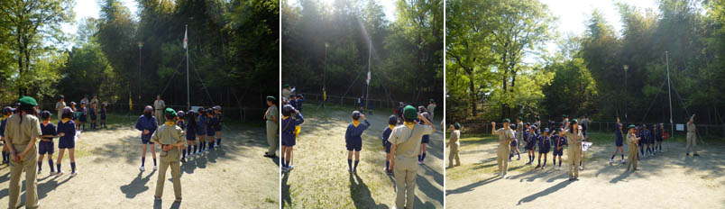 みんな気合は十分...。 でもカブ隊の点検は甘くなく、きっちり出来るまで何度でもやり直し...。