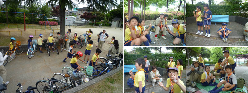 スカウト達は日頃乗り慣れている、愛車で豊ヶ丘公園に集結。
