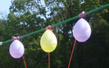 DLにはロープで固定された水風船の下に座ってもらいます。(頭には針が付いた帽子を着用)