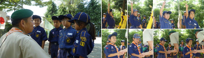 ビーバー隊から上進してきた4人のりすスカウトがカブ隊に入隊する日。