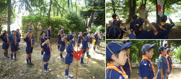 4人ともとってもカッコいい宣誓だったよ。これでチーフをつけて正式なカブスカウトだ。