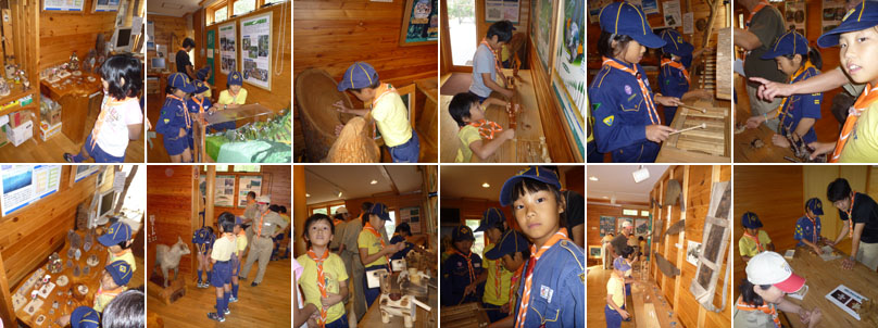 館内は木に関するものが数多くあり、スカウト達も興味深々の様子。