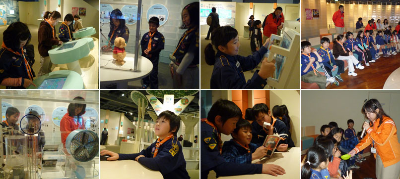 エネルギーに関しいろいろなコーナがに分かれていて、スカウト達も各々学習していた。