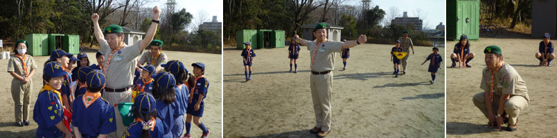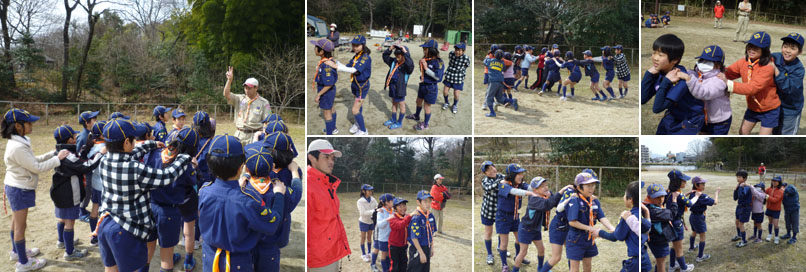 大輪に集合だ!隊長の動作に合わせて大きな輪になるのだよ。