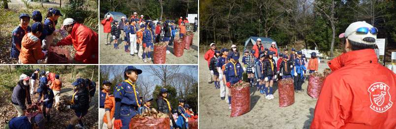 まずは自分たちの力で、燃料になる落ち葉を集めてくるのだ。どうです?大きな袋いっぱいに詰まった落ち葉を見てください。