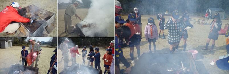 火の取り扱いについては日頃から注意しているが、もちろん今日も説明を聞き、注意して活動しよう。