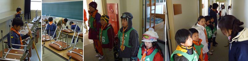 スキーウェアに着替えたら、朝の点検だ。いつものキャンプのようには出来ないが、スカウト達に緊張が走る。