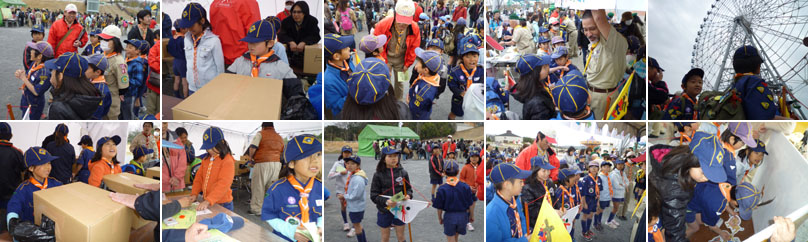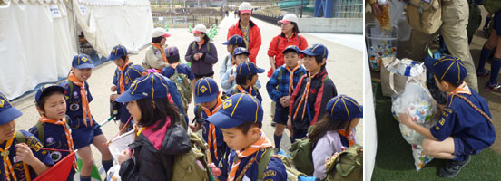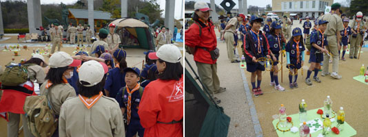 今回参加したスカウトが一同に集まってセレモニーを行う。スカウト4人による大会宣言が行われた。
