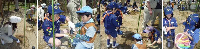 みんなそれぞれに選んだ苗を手に決められた場所にしっかりと穴を掘ろう。