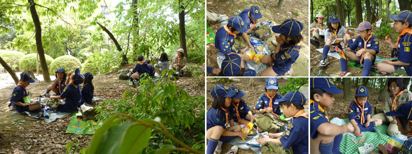 暑くなってきたので、木陰でおやつを食べよう。自分たちで相談して購入したおやつの味はいかがかな?
