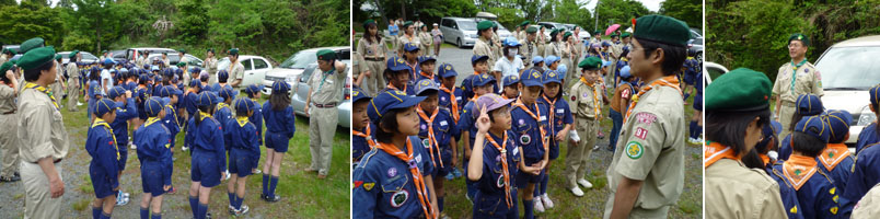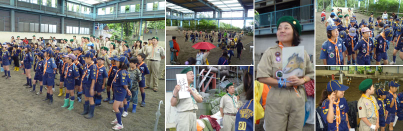 セレモニーが始まる。参加団は22団、35団、75団、91団と四日市第13団の総勢100名近いスカウト・リーダーだ。我が団からは26名参加した。