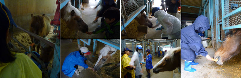 みんなそれぞれ気に入った馬の前に陣取り写生開始。こんなに間近で絵が描けるなんて嬉しいね。お馬さんも喜んで?へんな顔でお出迎え?