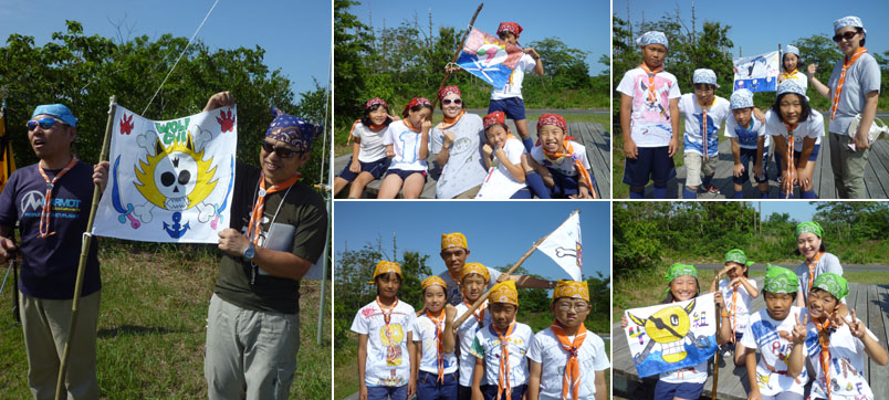 みんなで海賊になりきって、キャンプを楽しもう。みんなで作った海賊旗、Tシャツの出来栄えも最高だね。