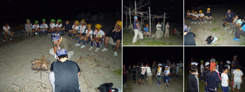 一日目の宴の最後は、1km程離れた浜辺まで行って団委員長の夜話を聞こう。