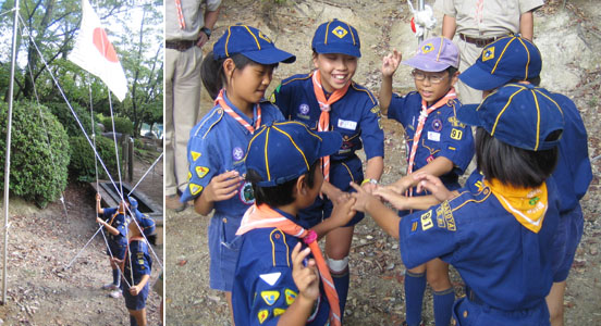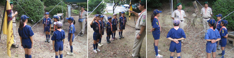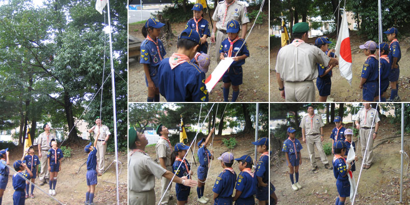 最初のプログラムは、国旗掲揚である。国旗を扱うにはとても厳しいルールーがある。これが守れないスカウトは国旗をさわれない。