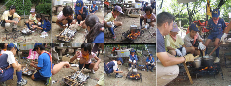 マッチは3本までで火をつけてくれ。最近の子どもたちは普段マッチをさわることがないが、スカウトは絶対に必要なスキルなので身につけておくようにね。