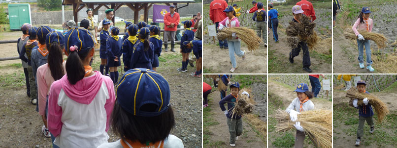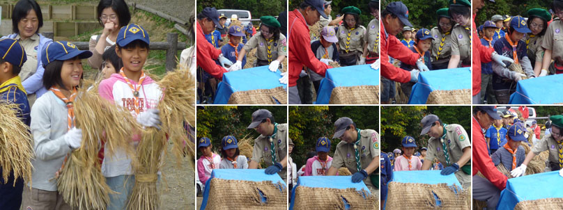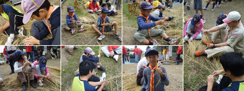 小さな手で一生懸命ワラを編んでいく姿は見ていてもカッコいい。スカウトの真剣な目つきが集中力の現われだ。何事も集中することはいいことだ。