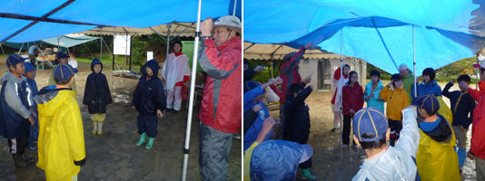 今日は『乾燥』を中心にプログラムを変更する。濡れたものを乾かすことは、キャンプをする上で重要なことだ。いい機会なのでみんなで憶えよう。