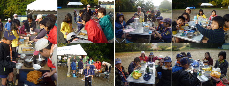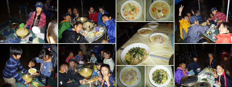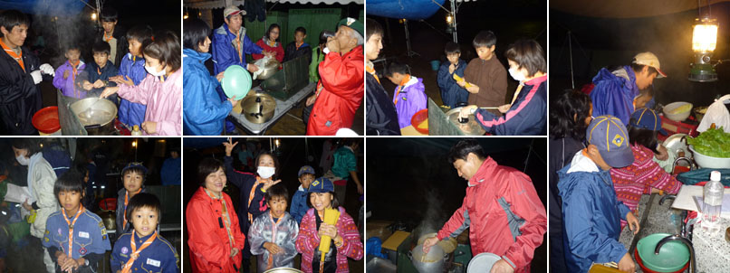 遅れていたスカウト達も夕飯作りのプログラム中にはほとんど集合してきて、いつもの賑やかさが戻った。