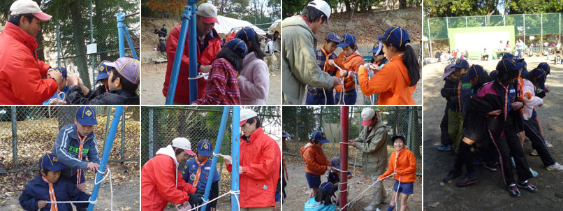 食後はロープを学ぼう。スカウトの基本のひとつはロープワークである。今回は時間が短かったがそれぞれの年代に合わせしっかり憶えよう。