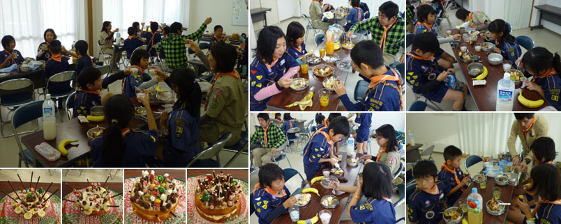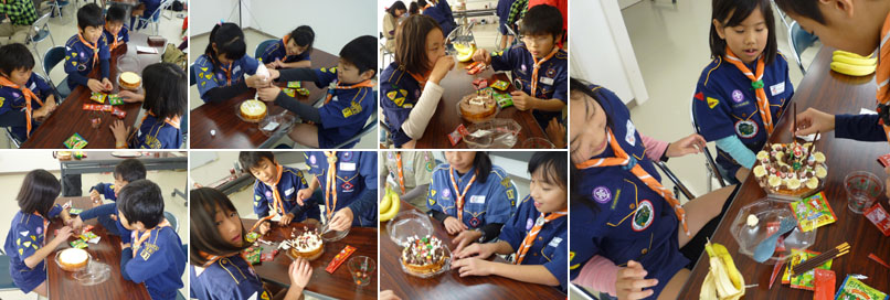 さあ、ここからはコミセンでカブ隊のクリスマス会を始めよう。まずは自分達で食べるケーキを完成させるよ。