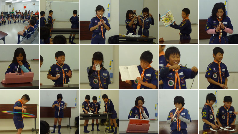 続いて発表会の始まりだ。保護者の方も参観に来ている。今年は全員、個人の出しものと組の出しものを発表しよう。