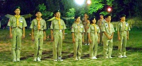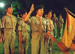 9月にカブ隊から上進した新入隊員の入隊宣誓式。