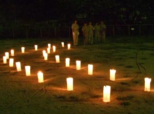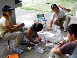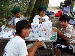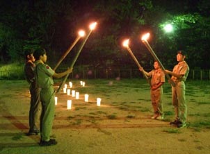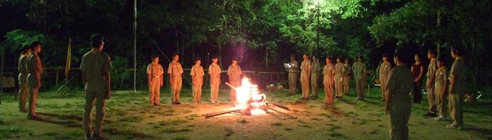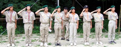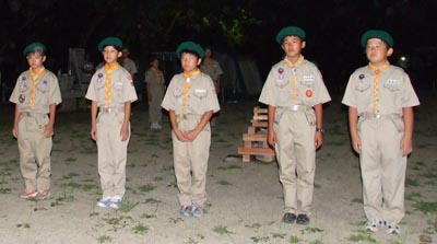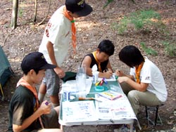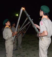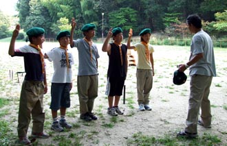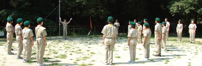 開村式を済ませて新入隊員はボーイスカウトになるための訓練。