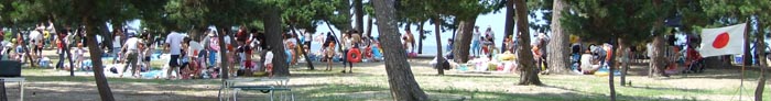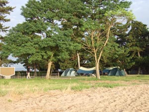 眼前は琵琶湖湖畔。青々とした芝が続くロングビーチだ!