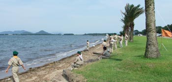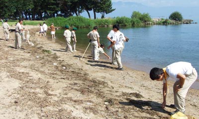 その後は湖畔のゴミ拾い。波打ち際はかなり汚い。ゴミが散乱している。