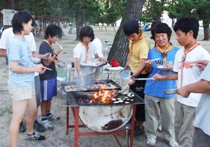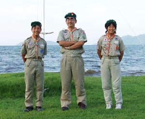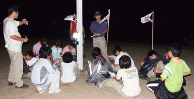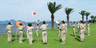 ↓ここからは2日目。左は朝日。右は朝のセレモニーだ。