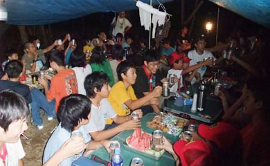 閉会式が終わったあと最後の晩餐。韓国スカウトとは明朝の別れで今夜が最後。