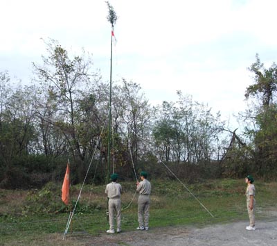 「ティッピー」建設予定地に全員集まり、地鎮祭をおこなう。スカウトが大黒柱3本を結束していよいよ棟上げ。