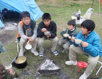 スカウトの夕食は「鍋」主食は「ツイストパン」
