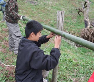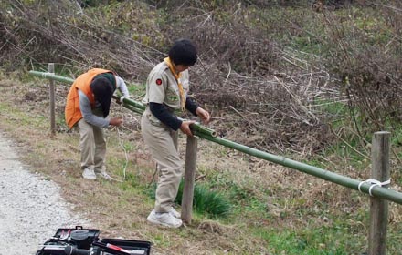 古くなった柵の竹を真新しい物に交換する作業を申し出て