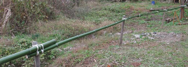古い竹をはずして、杭に角しばりで次々に結束していく。