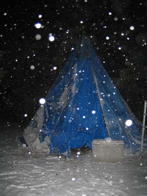 ↓「吹雪の中にそびえ立つテント!!」