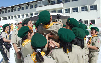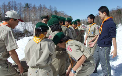 詳しくは団ページで。 ボーイ隊おわりのセレモニー後、転校する「桑田悠希」追い出し胴上げを挙行。