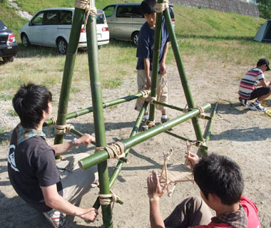 今回のキャンプは朝から夜まで全てパイオニアリングの製作。