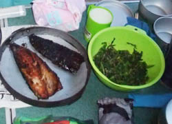 副長の指導により「いわし」三枚おろしのレクチャーがあった。これは、いわしの蒲焼きとなって食卓に上がった。